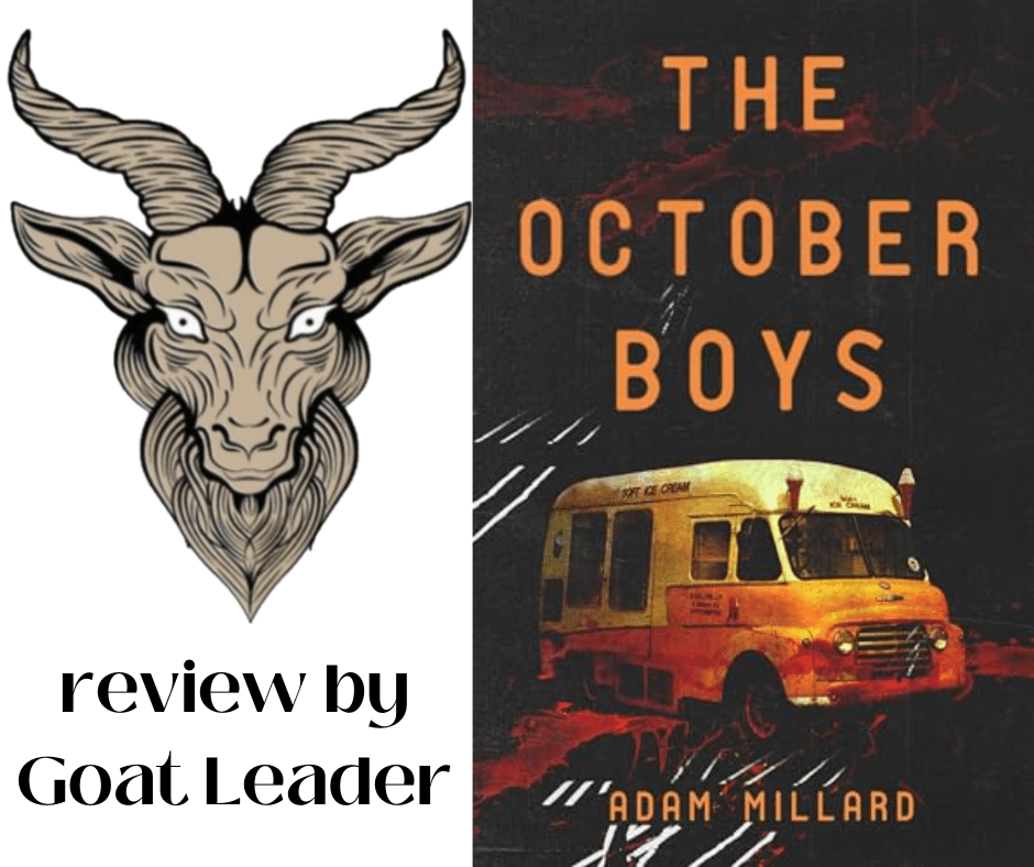 Dark bleatings, my spooky tribe! I’m here to talk about Adam Millard today… what a prick. No no, I’m just kidding! I know him to be very nice, actually, and also a terrific writer – one of my favourite indie authors and the genius behind one of my favourite books of all time – Milk. But we’re not here to talk about Milk today, or Adam actually, we’re talking about The October Boys – a brilliant read that reminded me slightly of Stephen King’s IT (28 year cycle of evil, whoop whoop!).